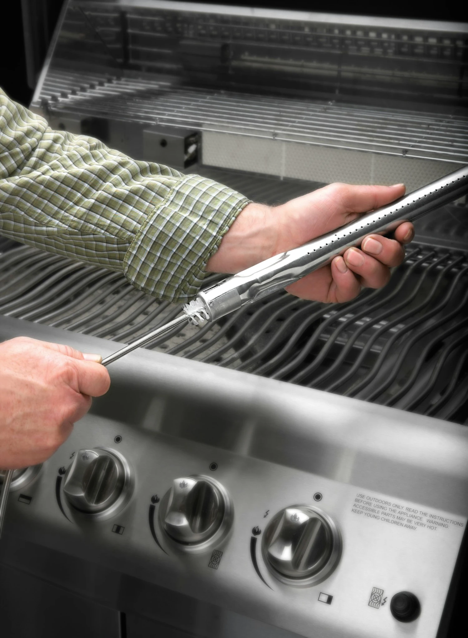 Die NAPOLEON Brennerrohr-Reinigungsbürste besitzt feste Nylonborsten und erreicht mit ihrem etwa 70 cm langen, flexiblen Stiel auch die entlegensten Stellen. Mit der Zeit kann das Zündsystem aufgrund von Ablagerungen schmutzig oder verstopft werden. Reinigen Sie das Zündsystem, indem Sie die Reinigungsbürste in die Zündöffnung einführen und die Bürste solange vor- und zurückbewegen, bis die Ablagerungen entfernt sind. Mit der Brennerrohr-Reinigungsbürste bleibt die Leistung Ihres Grills lange erhalten.